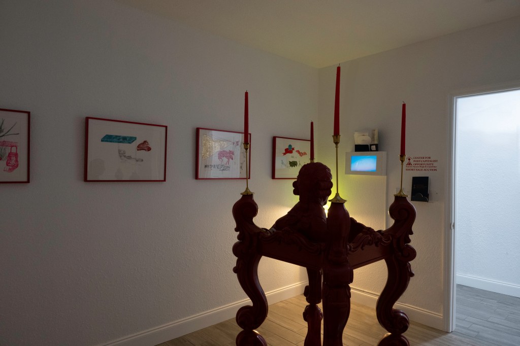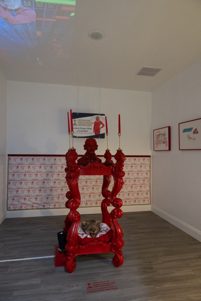 This installation and performance responds to the scalability of ideologies and missions of institutions during moments of extremis, presenting a parafictional rebranding of the Center For Post-Capitalist History as an “unreal estate” investment firm, and pivoting the role of the Archivist into the Agent. In a drag of the institutions currently bending to political and economic bullying, CPCH’s rebrand also suggests our new political and economic order relies on private claims of ownership of the intangible.
